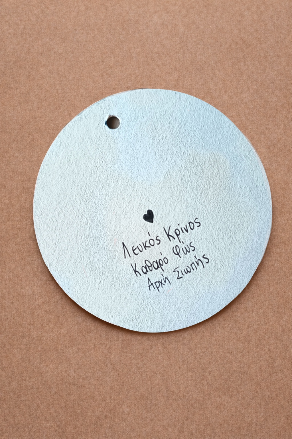 Λαμπάδα με καρτελάκι κρινάκι ζωγραφισμένο στο χέρι και στιχάκι
