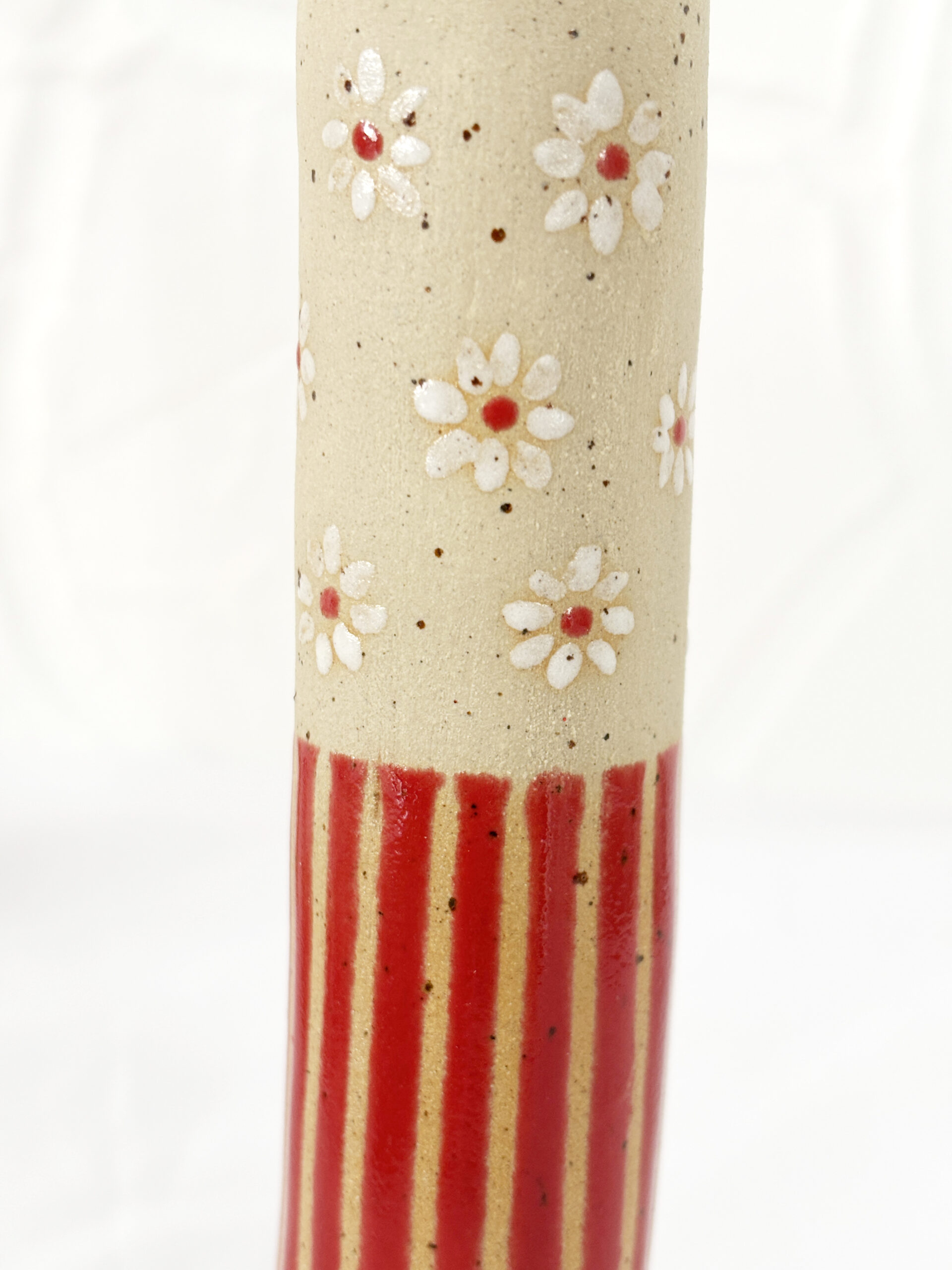 κεραμικές θήκες για λαμπαδα- βαζάκι- μαργαριτα κοκκινο κοντινο